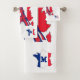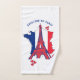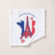 This is a stylish custom patriotic ADDICTED TO PARIS Bath Towel Set, with the map outline of France in the TRICOLORE flag of FRANCE. Curved at the top, the text reads ADDICTED TO PARIS. Taking pride of place is a graphic of the Eiffel Tower (Tour Eiffel) and there are groups of red hearts. The curved heading on this patriotic Paris Lover Bath Towel Set is CUSTOMIZABLE, so you can replace with your own preferred greeting or delete. There is also a CUSTOMIZABLE MONOGRAM in the bottom right hand corner. You can choose the background colour of this Parisian Bath Towel Set you prefer from the options available. Matching gifts available.