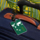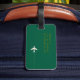 Flying around the world with style. Personalised dark green tag with templates to add your own initials and contact address.
