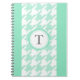 stylish aquamarine houndstooth with monogram notebook