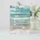 Elegant, romantic beach wedding theme design featuring starfishes, a serene ocean beach view in a sunny evening with sand and waves. Beautiful script curved in the background. It will be a great choice for a sophisticated, modern style. Use Customise it tool to add your info, choose fonts and colours.