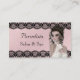 Impresss your clients with this elegant and stylish design featuring a beautiful graphic of a woman on a textured background with lace borders. Great business card for a hair & beauty salon / spa or for a makeup artist.