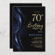 Invite your friends and loved ones to your 70th birthday with this stylish black and blue birthday party invitation. The customisable text area in this invitation template allows you to effortlessly include all the necessary details for your special birthday celebration, including the date, time, venue, and RSVP information. A variety of paper types and corner styles are available for your unique invitations, along with the option to download if you prefer a digital format.