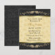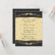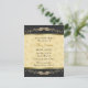 Pretty bridal shower invitation done in a black on black damask pattern, on the top and bottom, with a pretty golden yellow floral pattern, in the middle. Graphics of a gold tone line separates the backgrounds and lovely beige embossed looking rose flourish decorates the top and bottom. Customise the text to suit your party needs.