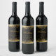 Stylish Black and Gold Snowflakes Wedding Wine Label