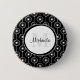 Give your personal style a modern boost with this stylish monogram stripes pattern button with girly black and white hearts and circles. Personalise by adding your name and monogrammed initial to the trendy circle frame.