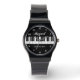 Stylish black and white piano keys watch for men. Personalise with name, monogram, funny quote or slogan. Custom background colour. Unique Birthday gift ideas for piano player, pianist, classical music teacher, musician, instructor, producer, artist, husband, dad etc. Classy men's watch with silicone strap.