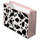 This cute gift bag has a fun black and white cow print on the front and back with contrast pale pink sides. Ideal for wedding, birthday and party gift wrapping.