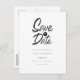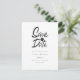 This minimalist save the date card features a modern hand-drawn save the date above your details set in an elegant text. The reverse has additional save the date details, including your wedding website, with your return address and space for your recipient's address.