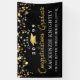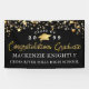 Create a modern custom, personalised graduation banner sign featuring the title CONGRATULATIONS GRADUATE in a stylish handwritten calligraphy script typography, class year, and graduate's name and school or other custom text with gold stars, confetti and string lights in your choice of background colour (shown in black) you can change to a school colour, coordinated party theme colour or choose from styled graphics backgrounds for a custom look. CHANGES: Change the background colour or the text font style, size, colour, spacing and placement in EDIT. OPTIONS: The sample is shown in a 3x5' size--other sizes are available on the ordering page or the design can be transferred to a poster, foam board, tapestry or other product or converted by the designer to a Digital Download file for local printing. ASSISTANCE: For help with design modification/personalisation, colour change, transferring the design to another product or if you would like coordinating items, contact the designer BEFORE ORDERING via Zazzle Chat or makeitaboutyoustore@gmail.com.