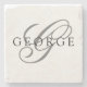 Stylish Black Grey Monogram Initial Script Name Stone Coaster