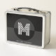 Stylish Black Grey White Geometric Modern Monogram Metal Lunch Box