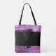 Carry your essentials in glamorous style with this Stylish Black Magenta Faux Glitter Monogram Name Tote Bag. This modern design features a chic black background framed by vibrant, textured-look brush strokes in shades of magenta, purple, and shimmering pink. The faux glitter effect is accented with scattered sparkles, giving it a luxurious, high-end aesthetic without the mess of real glitter.