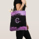 Stylish Black Magenta Faux Glitter Monogram Name Tote Bag