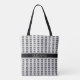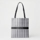 Modern stylish black star pattern and vertical stripes on light grey Tote Bag. Text can be personalised.