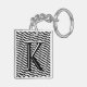 Stylish Black White Chevron Stripe Monogram Custom Key Ring
