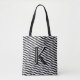Stylish Black White Chevron Stripe Monogram Custom Tote Bag