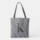 Add personalised style to your accessory bags and purses with a custom-made tote bag. Stylish Black White Chevron Zig Zag Stripe Monogram Tote Bag. Great gift idea.