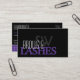 YOUR FAVORITE - Make a lasting impression with this modern and cool business card design featuring different stylish fonts in white, light grey and purple colours on a black background.