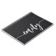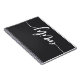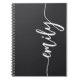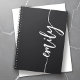 A stylish flat black (a shade of matte black) notebook design featuring your name in beautiful white calligraphy script spreading across the right edge of the design. Personalise the name with your name and be sure to leave the leading and trailing swash symbol that mails the trailing swashes at the beginning and end of your name. If you need to adjust the size of the text, select "edit using design template" which opens the full editor where you can increase or decrease the text size with the plus or minus symbol.