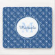 Stylish Blue and White Hearts Monogram With Name Mouse Mat