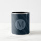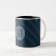 Stylish Blue Stripes Custom Circle Monogram Two-Tone Coffee Mug