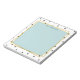 A blend of dusty pastel blue colour block and chic black and white confetti polka dots pattern give this personalised notepad fresh appealing style. A frame inset in the centre of the design has a double geometric frame in gold. Personalise the sample name shown in the design template with your desired name or other text.