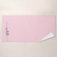 Elegant Chic Modern Monogram Name Signature Script Custom Personalised Blush Pink Bath Towel Set. This delicate design featuring custom name in a cursive hand lettered swash tail font calligraphy (or typography) in black on blush pink or baby pink colour background. Great stylish feminine housewarming gift, also for birthday, bridal shower, wedding, sweet 16 birthday party, bachelorette party, mother’s day, anniversary gift and for graduation party and It’s for the girl who likes stylish elegant things.