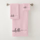 Stylish Blush Pink Monogram Name Script Signature Bath Towel Set