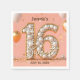 These enchanting Sweet Sixteen paper napkins are tiny canvases of joy, ready to sprinkle magic on your special day! A soft blush pink background sets the stage for a dazzling "16" gleaming in gold and pearl-studded glory, catching the light like a thousand tiny stars. The word "Sweet" flows elegantly across, a sweet ribbon of personalisation, while playful golden confetti and festive balloons float around, mirroring the excitement of a grand party. What makes them truly special? Every word is yours to command! These aren't just napkins; they're your design, custom-tailored to perfectly capture the essence of your Sweet Sixteen.