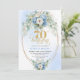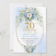 Stylish Boho Blue Gold Floral 70th Birthday Invite