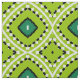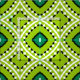 Seamless decorative pattern featuring geometric shapes in green, black and white.