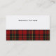 Stylish plaid business card done in the traditional black, red, and yellow Brodie clan tartan pattern. The front of the card has a black edged semi transparent white band, across the middle of the card, with custom black text. The back of the card is done in white, with a strip of plaid at the bottom, and black text on the white portion. Personalise all the text to suit your needs. Handsome and professional looking business card.