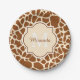 Stylish Brown Giraffe Print Monogram and Name Paper Plate