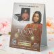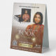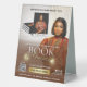 Announce your upcoming book launch with this elegant and captivating table tent sign design. Featuring rich brown and gold tones, a luxurious wall-textured background, a soft gradient overlay accented with delicate gold lines and graceful script, this template delivers a modern, sophisticated look. The refined typography adds a touch of class, while your book cover and photo remain the focal point—ensuring they capture attention instantly.