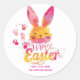 Stylish bunny ears pink Happy Easter Round sticker Gift Tags