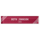 Elegant and stylish desk name plate with three white diagonal lines on burgundy background.