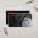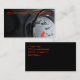 A modern style car-related business card perfectly represents anyone working in the car retail. Gauge coloured in white with the red indicator grabs the attention and is easily memorizable.