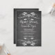 Beautiful chic vintage flourish bridal shower invitation featuring pretty white floral leaf flourish accents sent on a black chalkboard background. Flip our modern wedding shower invite over to view a matching blackboard back for an extra special touch. Simple yet elegant bridal shower invitation perfect for a spring bridal shower, summer bridal shower, fall bridal shower or winter bridal shower. Available in our shop in a variety of popular colour choices and custom colour request are always welcomed.