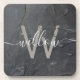 Stylish Charcoal Grey Stone Script Monogram Coaster