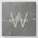 Stylish Charcoal Grey Stone Script Monogram Coaster