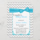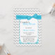 Stylish couple's baby shower invitation done in a light grey and white chevron zigzag pattern. Graphics of a turquoise decorative edged white text area, in the middle, has a pretty turquoise ribbon and bow, at the top. The backside is done in the same chevron pattern, with another white text area, at the bottom. Personalise all the text, front and back to suit your event needs.