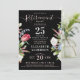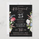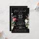 This elegant Stylish Chic Black Lavender Wild Flower Retirement Invitation features a bohemian floral design with wildflowers on a chic black background. The modern script in pastel pink and white combines with classical typography to create a sophisticated feel. The design showcases a retro vintage illustration of magenta red tulips, green leaves, and lavender blue and white wildflowers, evoking the essence of a beautiful garden in full bloom. The reverse side is solid black, and all text is customisable. Available in both print and digital formats, you can personalise your invitation to perfection. Explore colour variations and the full collection. Order now!