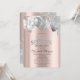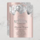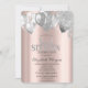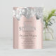 Elegant silver glitter drips, and balloons on a rose gold background.