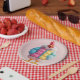 Stylish Chicken in Colourful Winter Puffer Jacket Paper Plate
