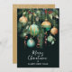 Elegant Christmas holiday flat greeting cards feature a design of pine branches, green and gold Christmas ball ornaments and ribbons on a black background with Merry Christmas & Happy New Year in chic lettering on the front and your personal greeting and names on the back. Order PRINTED and/or INSTANT DOWNLOAD to send digitally. MATCHING items in our collection.
