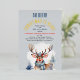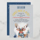 This charming Christmas dinner and gift exchange invitation features a watercolor illustration of Rudolph the Red-Nosed Reindeer set against a magical light grey winter landscape. The text, in festive red, white, and blue, is fully customisable to suit your event. The back of the invitation showcases a snowy scene with white snowflakes on a light grey foggy like background, adding a cosy winter touch. For an extra touch of elegance, you can choose to add foil accents in either silver or rose gold. This invitation is the perfect way to set the tone for a memorable holiday celebration!