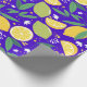 Stylish Citrus Lemon Botanical Pattern in Blue Wrapping Paper