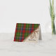 Colourful thank you card, done in the traditional red, green, blue, yellow, and white clan Forrester tartan plaid pattern. A sand coloured right corner has graphics of a leather string bow as a border, between the plaid and sand backgrounds. Black text reading Thank You, with black custom text, inside is ready to personalise, to suit your needs.