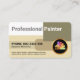 Cover features a creative colour blocks design. Over at the top is the business name divided into 2 caption remarks which you can change. This is followed by the phone contact, your prestigious name and a list of possible services that you can change accordingly. To the right side of this is a gold "home with a paint fan" logo you can use.