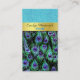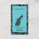 Stylish ladies business card, done in a a colourful peacock feather design, on the front, with an turquoise swirl pattern, at the top and a gold tone band separating the backgrounds. The same aquamarine swirl pattern covers the back of the card and a vintage illustration of a colourful peacock decorates the middle. Black and aqua text is ready to personalise with your information. A lovely stand out card great for any kind of occupation or business.